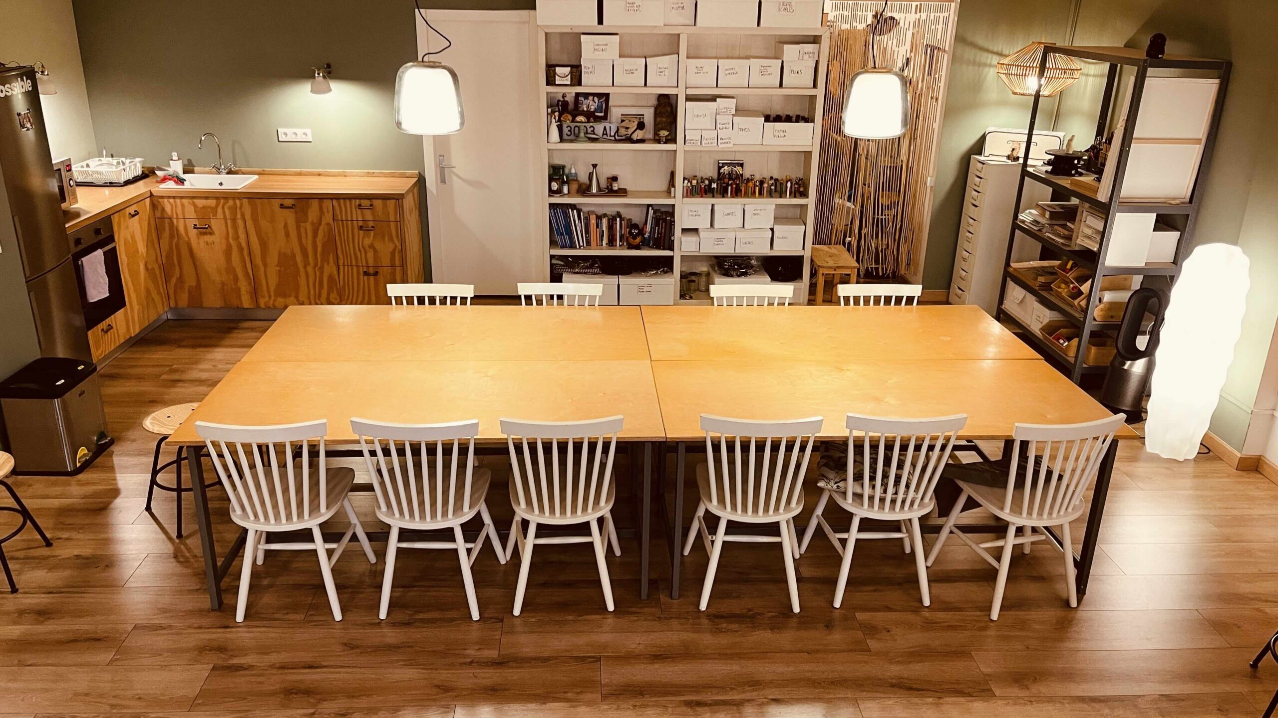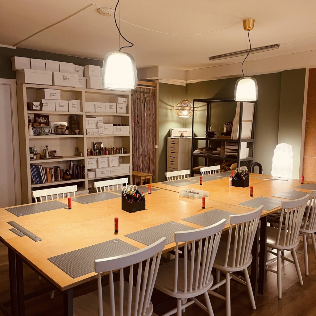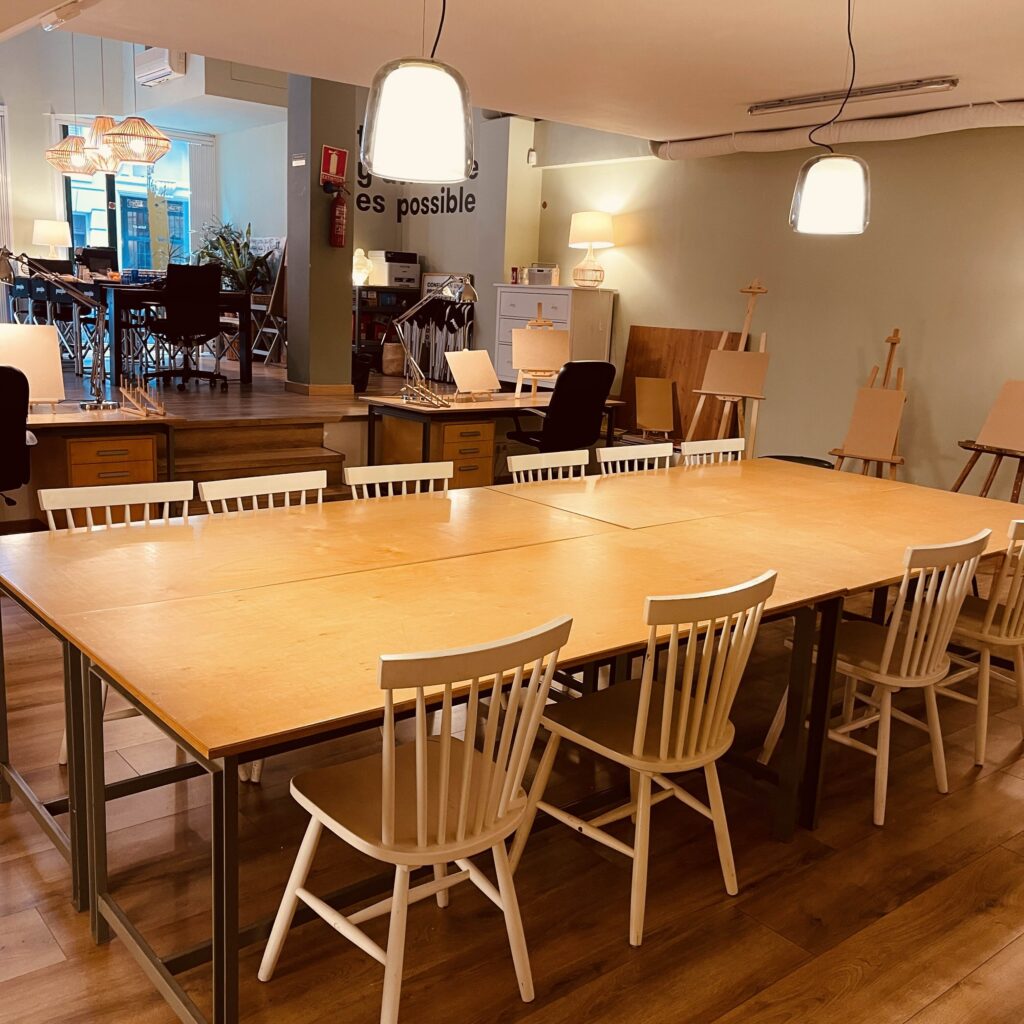 Hemos creado un espacio pensado al detalle: luz amable, materialesbonitos, mobiliario cómodo y una decoración que te abraza nada más entrar.Le hemos puesto mucho cariño para que cada clase se sienta como unpequeño refugio creativo.